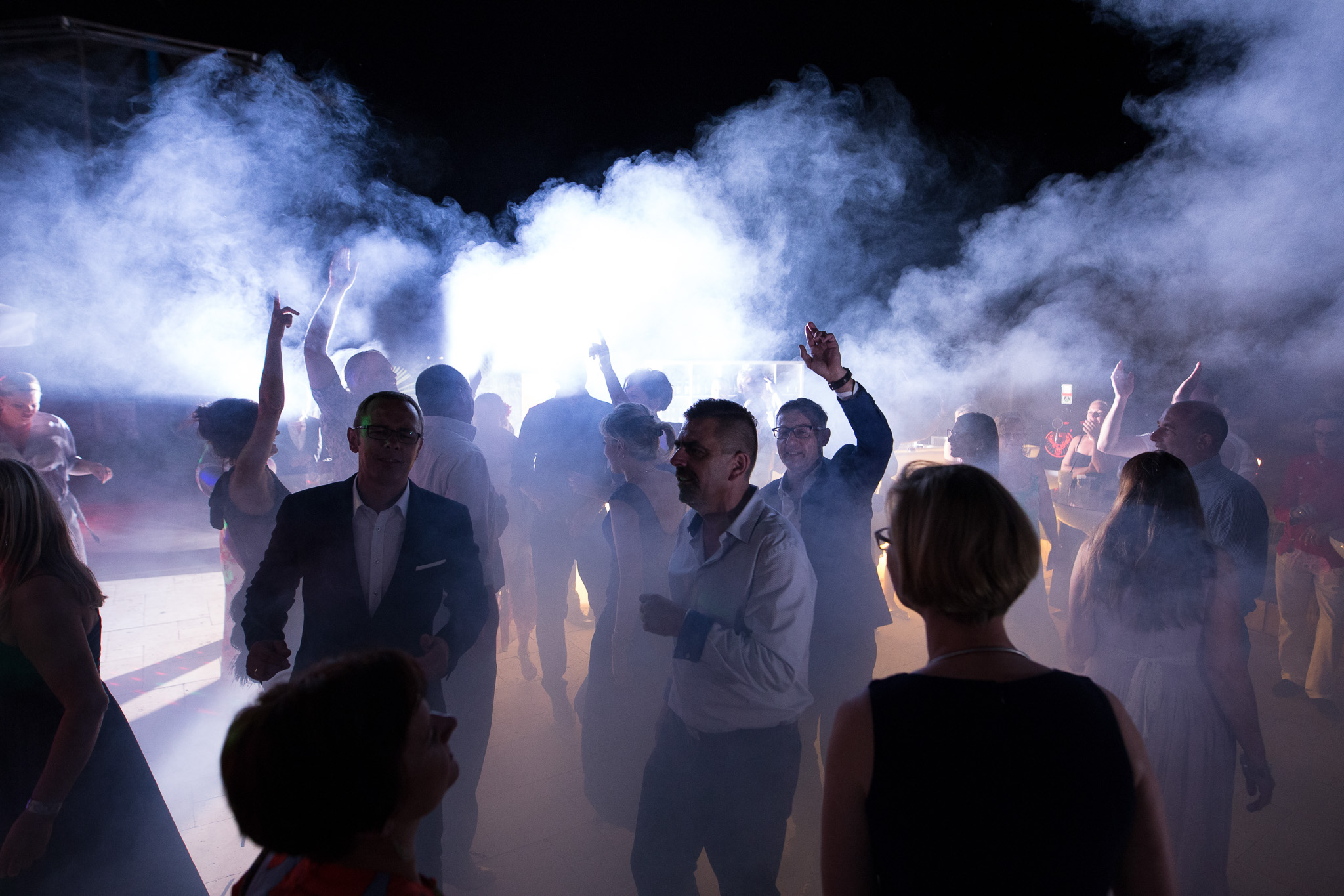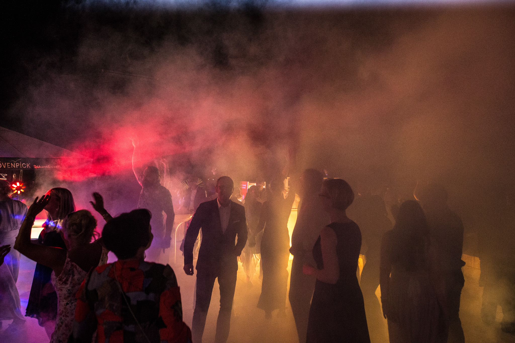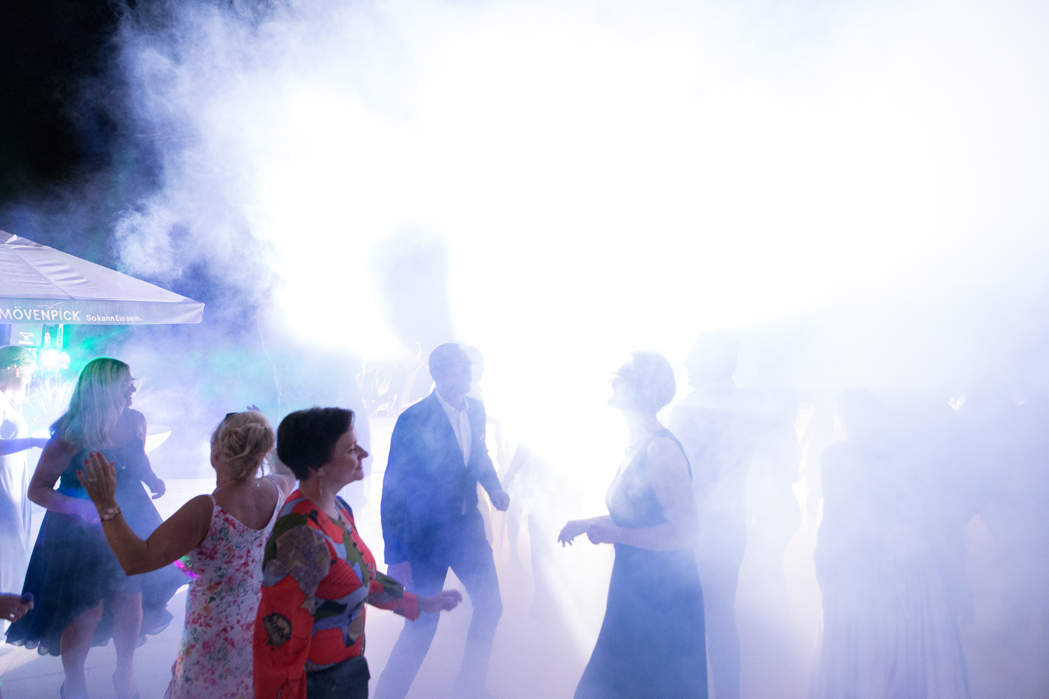Nach dem kulinarischen Genuss verwandelte sich der Abend in ein Fest der Musik und des Entertainments. Live-Musik begeisterte die Gäste, während eine LED Outdoor Bar für eine glamouröse Atmosphäre sorgte. Die gesamte Veranstaltung fand im Außenbereich statt, wobei das Wetter perfekt mitspielte. Bei angenehmen 30 Grad und strahlendem Sonnenschein konnte die Hochzeitsgesellschaft einen unvergesslichen Tag im Café del Lago genießen.